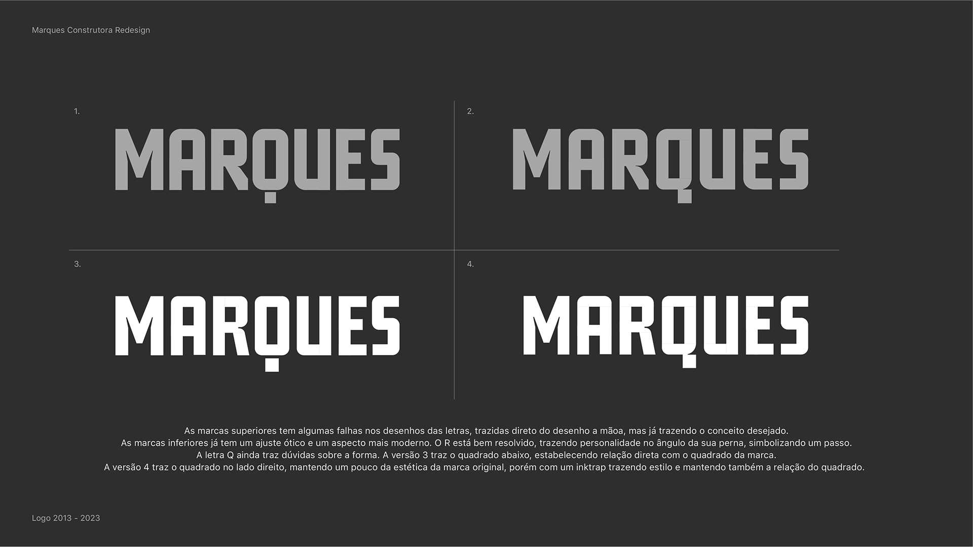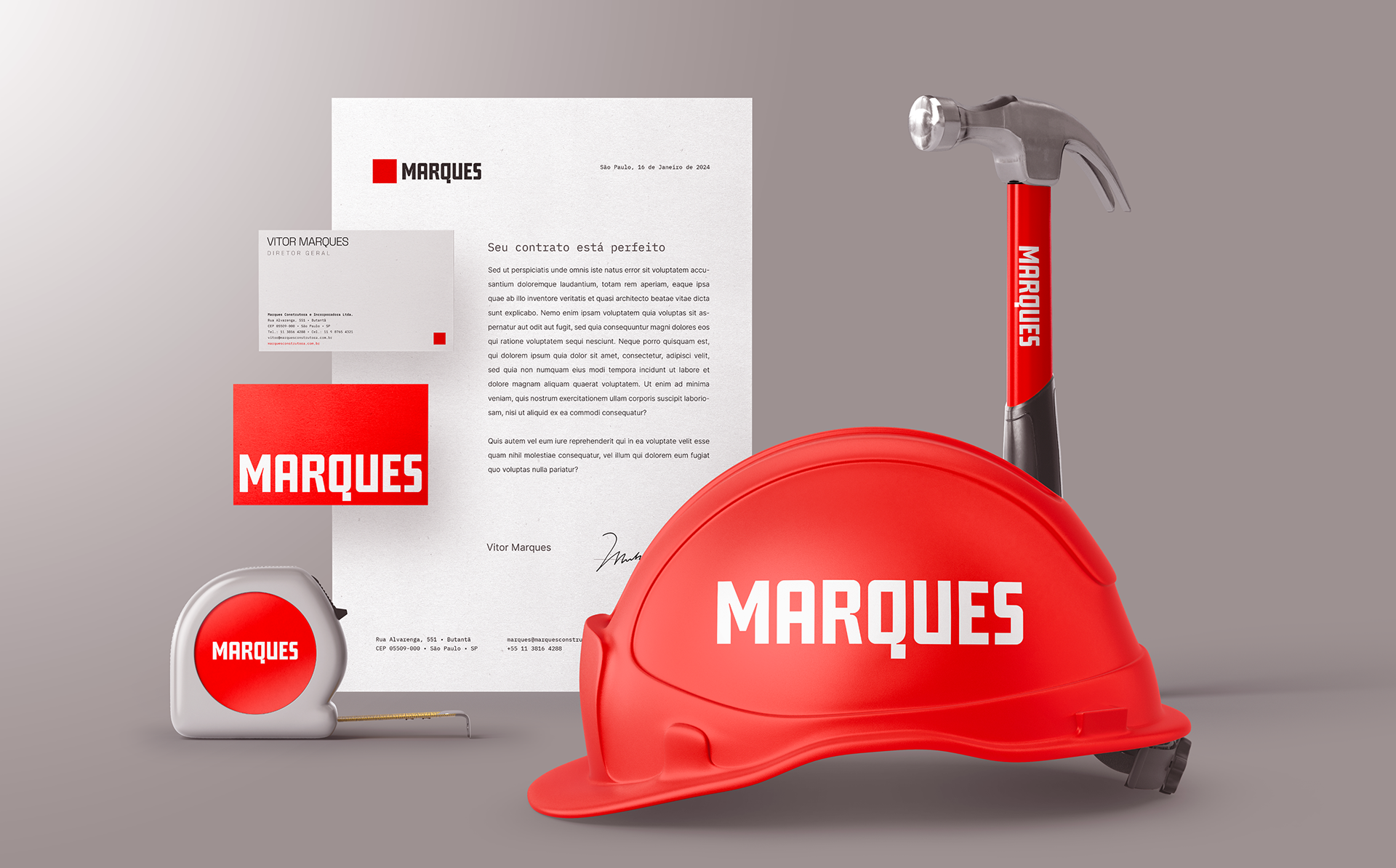 Marques Construtora → This project marked the second brand redesign for Marques Construtora (a construction company) in a 12-year relationship. The objective was to modernize the brand while preserving its equity, updating it for contemporary digital environments and new communication demands.